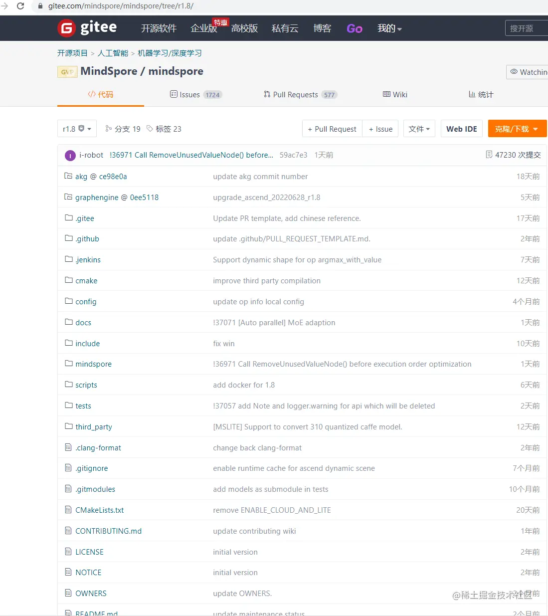 下载mindspore r1.8分支源码: