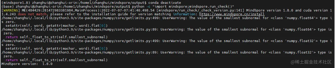 重新 python -c "import mindspore;mindspore.run_check()"