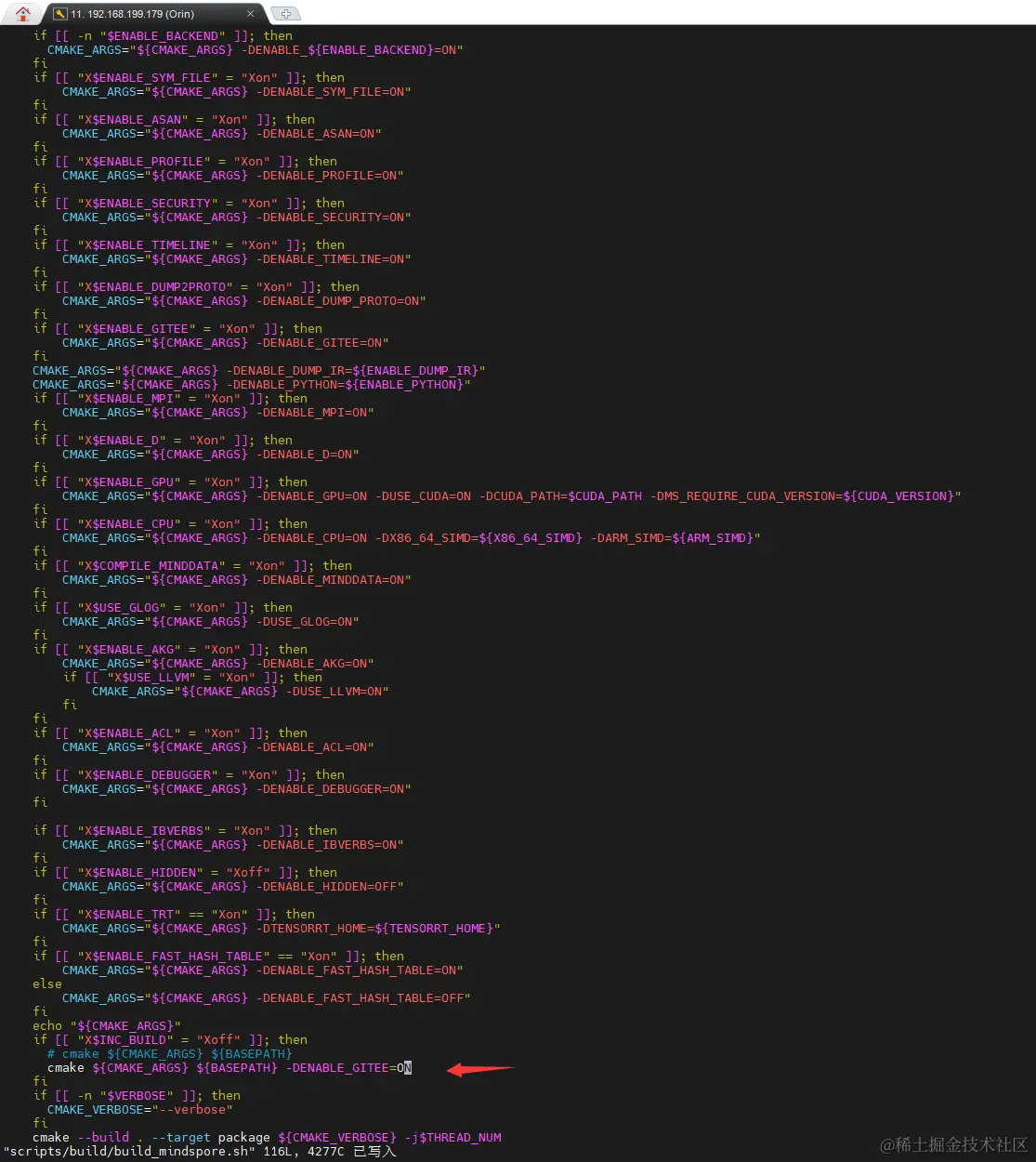 如上图所示,箭头处增加 -DENABLE_GITEE=ON