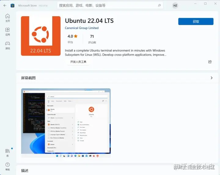 (1)使用Microsoft Store安装 ubuntu 22.04 LTS: