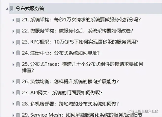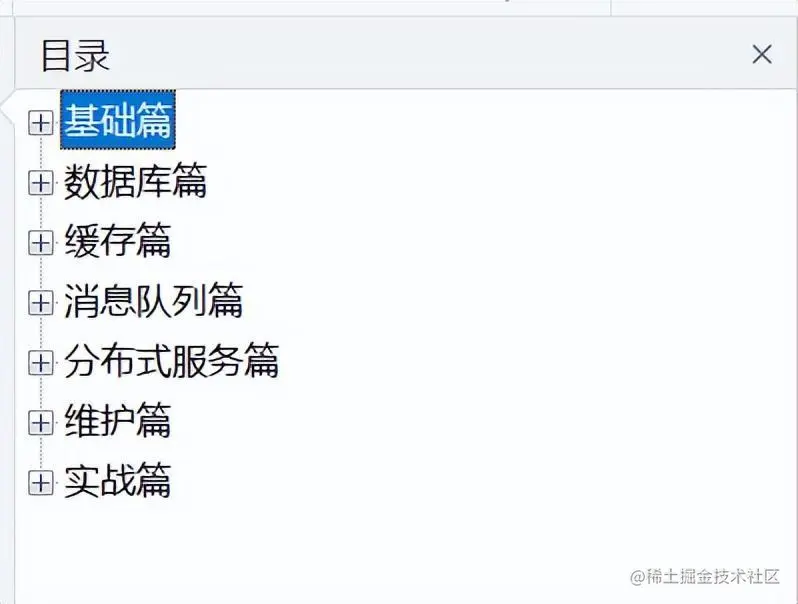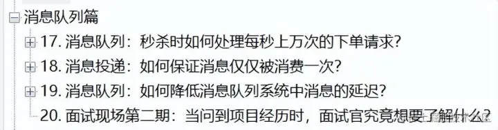 因为它是一个典型的读远大于写的业务场景。同样地,抢票软件也是这个逻辑,1趟火车只放2000张票,可是却有成百上千万人同时在网站上抢票,看到这里你大概意识到这类业务为什么难做了。 此外任何大型网站应用,只要涉及大流量、高并发,都免不了在浏览器层、站点层、服务层、数据层这几层核心上下功夫。 因此,秒杀系统的调优策略,放在很多分布式系统中都是适用的: "请求超过了系统负载怎么办?如何保证分布式事务中的消息不丢失?什么情况下使用 Redis 缓存……" 一位在编程界摸打滚爬10余年的程序员,希望能给你带来帮助 总览目录 由于文章篇幅的限制小编就用截图的方式给大家展示需要获取完整版的朋友可以点进去了解一下,点击——【传送门】——即可!
