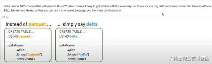 Delta 是 Lakehouse 的解决方案,Databricks 也被当做 lakehouse 的代表,但是 delta 这个项目自身的定义却经历了一些变化,我关注到去年某个时间点之前, delta 定义为 open format,引擎中可以直接用 delta 替换 parquet。