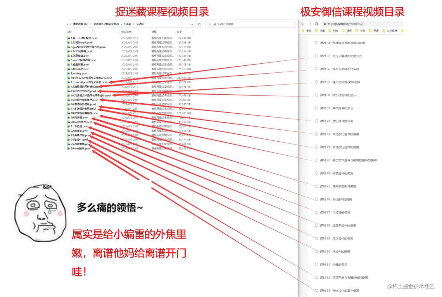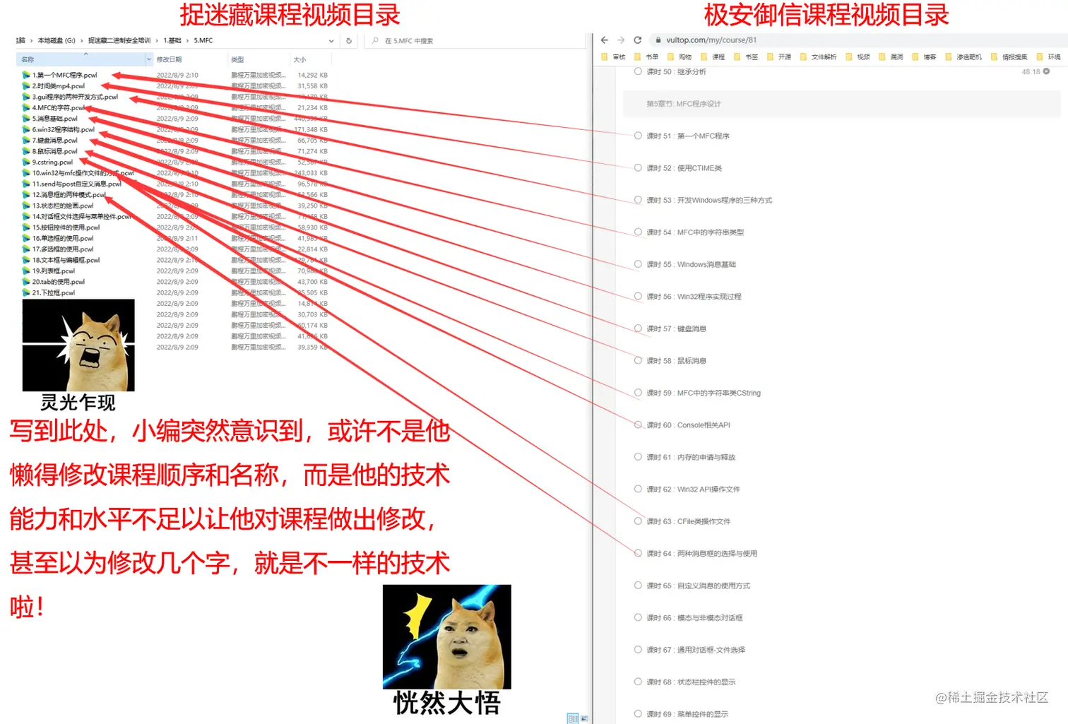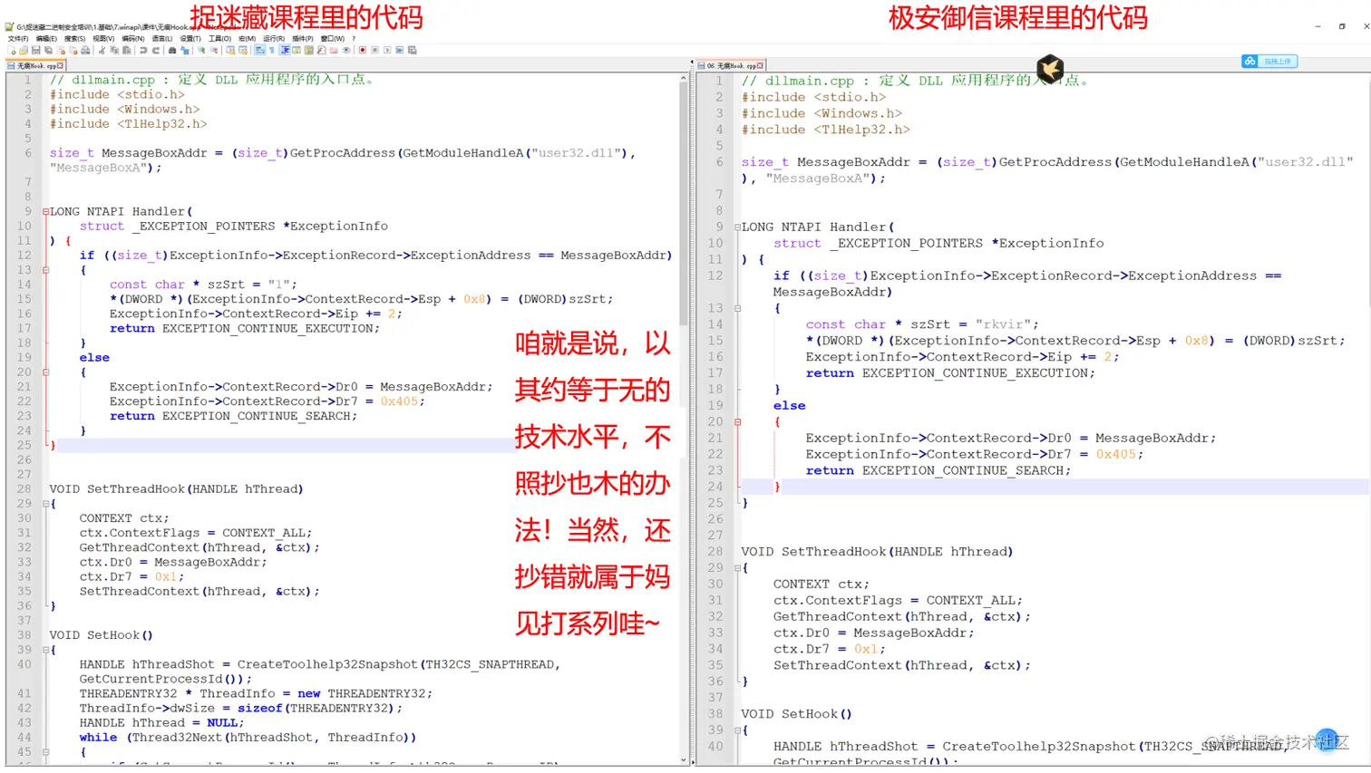 剩下的164节又是什么情况呢?足足有153节是剽窃、抄袭自北京极安御信科技有限公司rkvir讲师的课程,涉及到C++、逆向工程之逆向分析、MFC程序设计、PE结构、系统编程等。虽然,捉迷藏剽窃、抄袭的课程只占到我方(极安御信)现有1160节原创课程很小的一部分(截止计算到写文章时,因有些课程还在持续更新中),但是我方仍认为此次捉迷藏剽窃抄袭事件是极其无耻和恶劣的,并强烈谴责剽窃、抄袭的违法行为!