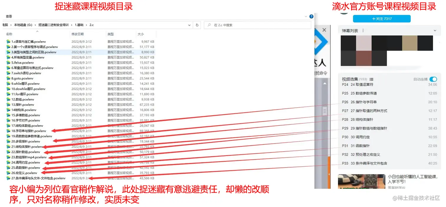 其中,基础部分里的C语言27节,汇编18节,硬编码9节,与昆山滴水信息技术有限公司(编程达人)的课程高度相似。