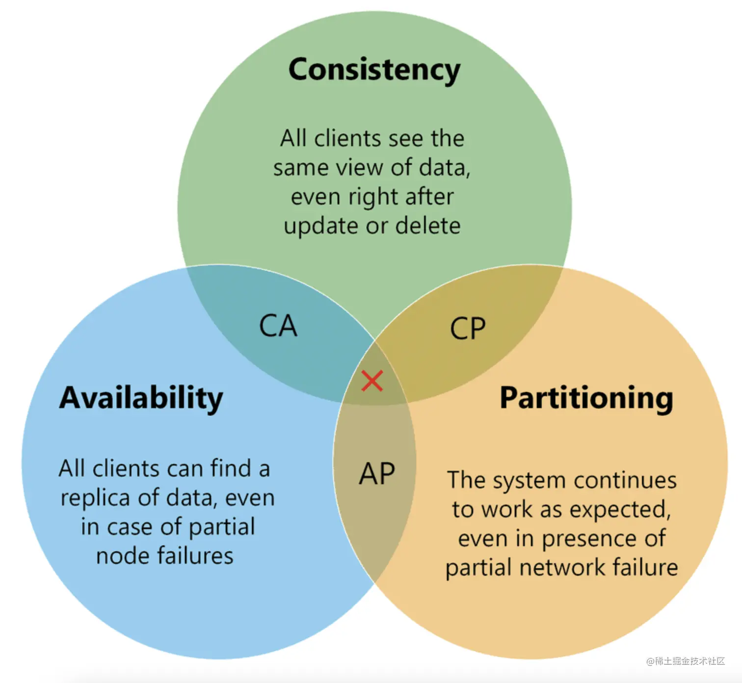 这一点就意味着完美的 CP 场景是不存在的,即使是几毫秒的数据复制延迟,在这几毫秒时间间隔内,系统是不符合 CP 要求的。
