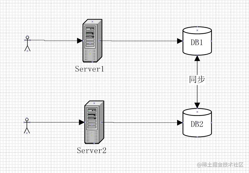 一个简单的分布式系统如下:系统中有两个节点对外提供服务,Server1和Server2,Server1和Server2各自维护和访问自己的数据库DB1和DB2,DB1和DB2数据通过复制技术保证数据之间的同步。
