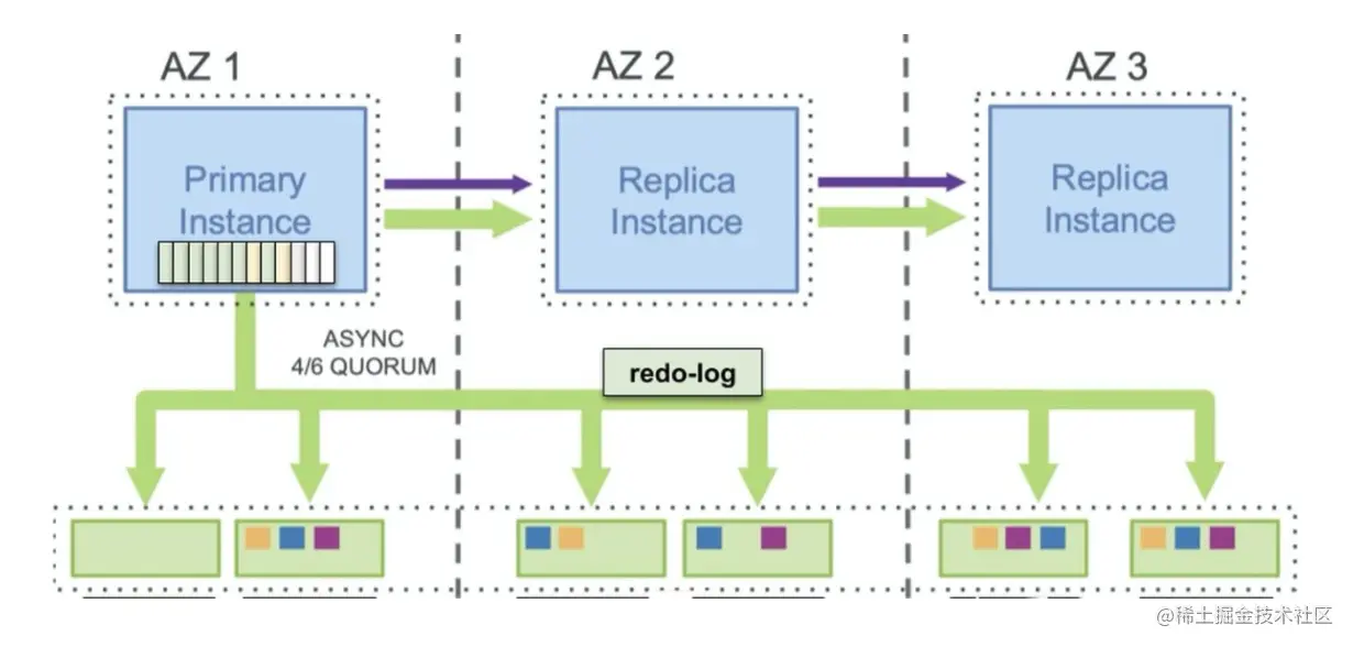如果有不止一条 redo-log,这一套做法就行不通了。我们通常认为 Aurora 解决了高可用问题,但并没有很好的解决扩展性问题,数据库的吞吐量(尤其是写入吞吐量)仍然受单个节点限制。
