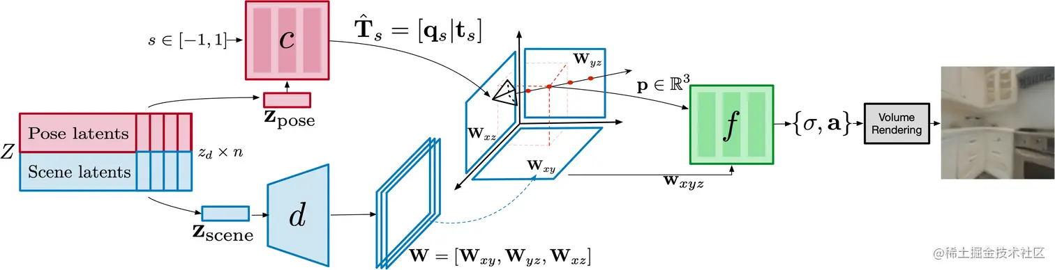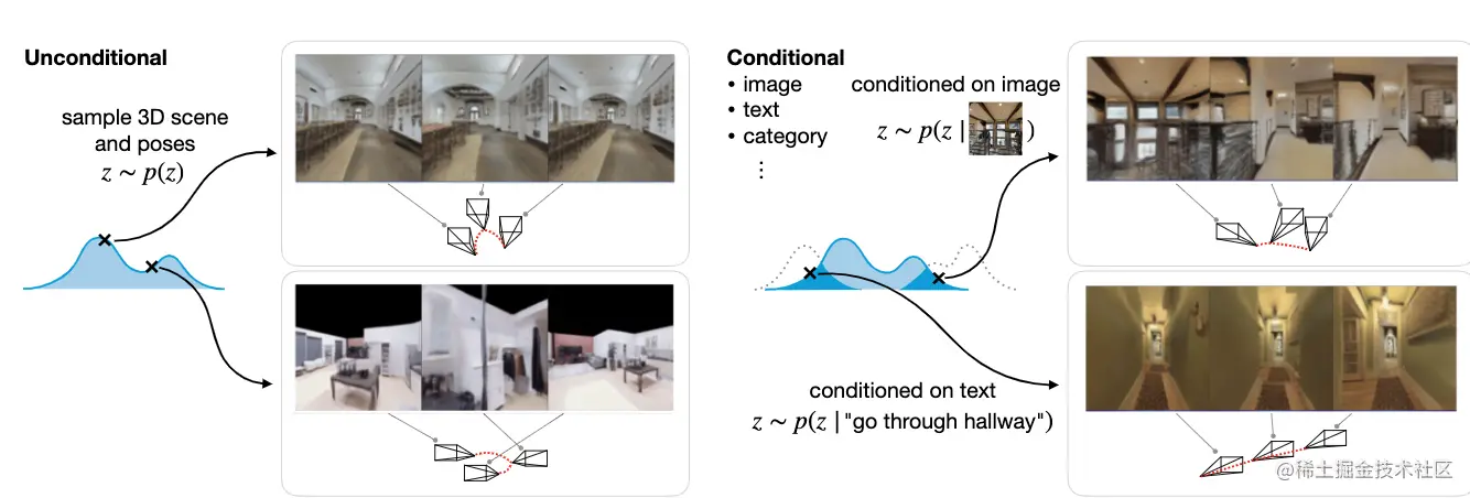 论文摘要:我们推出了GAUDI,这是一个能够捕捉复杂而逼真的3D场景分布的生成模型,可以从移动的摄像机中进行沉浸式渲染。我们用一种可扩展但强大的方法来解决这个具有挑战性的问题,我们首先优化一个潜在的表征,将辐射场和摄像机的位置分开。然后,这个潜像表示被用来学习一个生成模型,该模型能够无条件和有条件地生成三维场景。我们的模型通过消除摄像机姿势分布可以在不同样本中共享的假设,概括了以前关注单一物体的工作。我们表明,GAUDI在多个数据集的无条件生成设置中获得了最先进的性能,并允许在给定条件变量(如稀疏的图像观测或描述场景的文本)的情况下有条件地生成三维场景。