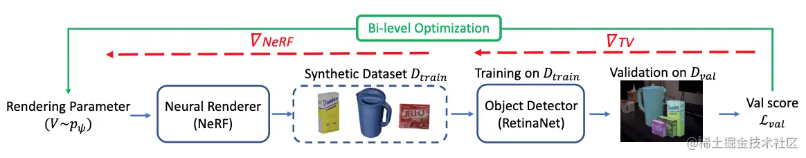 论文摘要:训练计算机视觉模型通常需要在一组不同的场景配置和属性下收集和标记大量的图像。这个过程非常耗时,而且要确保采集的数据分布能够很好地映射到应用场景的目标域,这是一个挑战。最近,合成数据已经成为解决这两个问题的一种方式。然而,现有的方法要么需要人类专家手动调整每个场景属性,要么使用几乎不提供控制的自动方法;这需要渲染大量的随机数据变化,很慢且对目标领域来说往往是次优的。我们提出了第一个完全可区分的合成数据管道,它在闭环中使用神经辐射场(NeRFs)与目标应用的损失函数。我们的方法按需生成数据,无需人力,以最大限度地提高目标任务的准确性。我们说明了我们的方法在合成和真实世界物体检测任务上的有效性。我们还介绍了一个新的 "YCB-in-the-Wild "数据集和基准,为现实世界环境中不同姿势的物体检测提供了一个测试场景。