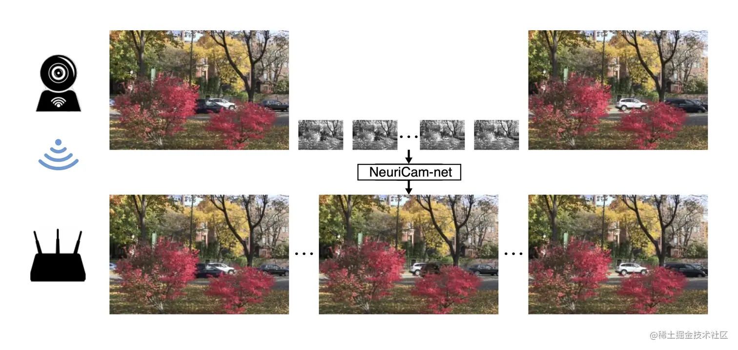 论文简介:Our idea is to design a dual-mode camera system where the first mode is low power (1. 1 ~ mW) but only outputs gray-scale, low resolution and noisy video and the second mode consumes much higher power (100 ~ mW) but outputs color and higher resolution images./我们的想法是设计一个双模式摄像机系统,其中第一模式是低功率(1.1 ~ mW),但只输出灰度、低分辨率和有噪声的视频,第二模式消耗更高的功率(100 ~ mW),但输出彩色和高分辨率的图像。