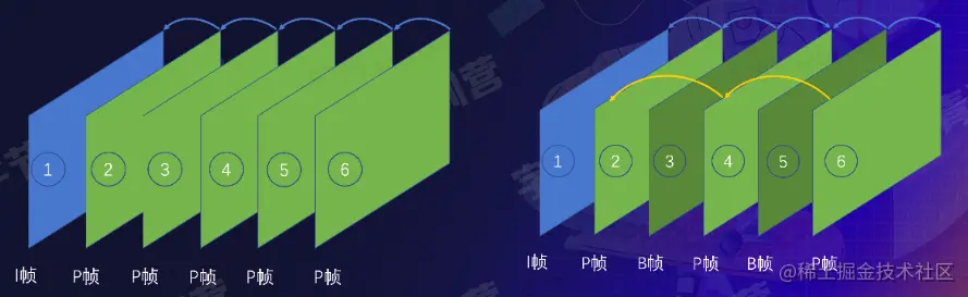 P帧又称帧间预测编码帧,需要参考前面的I帧或者P帧才能进行编码