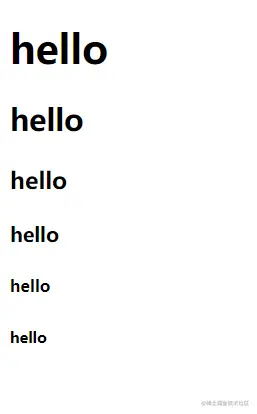 有六个, 从 h1 - h6. 数字越大, 则字体越小.