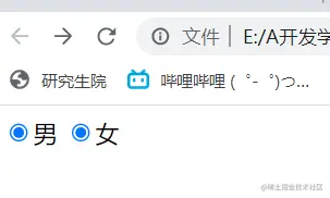 发现这两个都可以选中,所以就需要再设置一个 name 来达到互斥的效果: