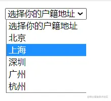 通过 selected 就可以完成默认选中,如果没有指定默认,默认选中第一项: