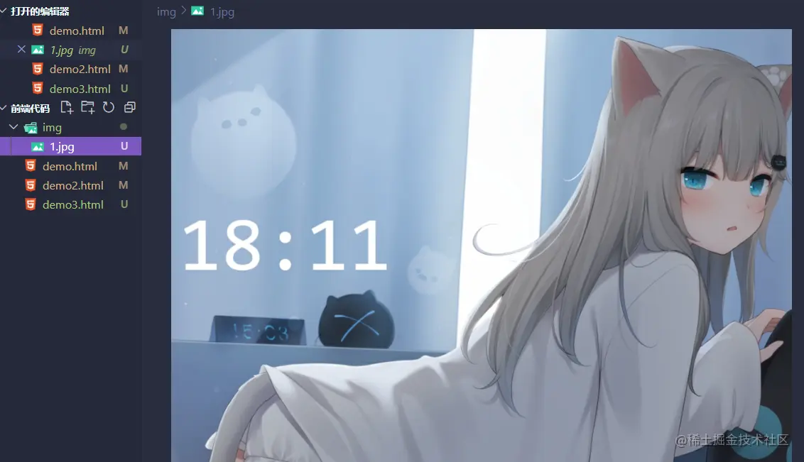 使用 img 标签来表示图片。img 也是一个单标签,里面可以有好多属性,其中最重要的就是 src 属性。通过 src 来描述图片所在的位置。我们把图片放在项目的目录当中,然后在代码当中使用就好了: