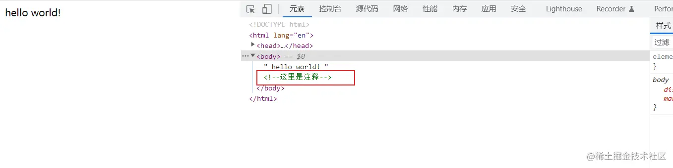 通过开发者工具可以看到,注释是可以被其他人看到的,所以尽量不要写注释。