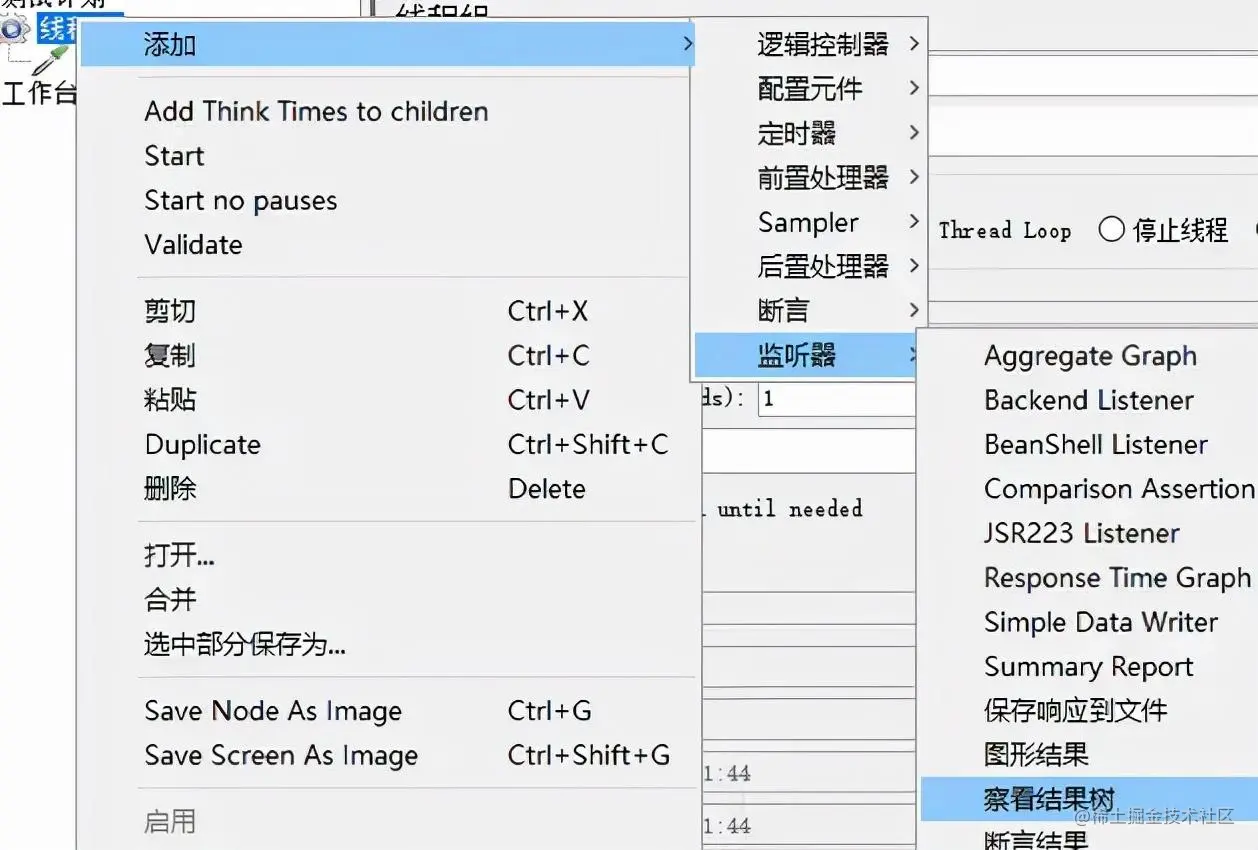 操作:鼠标右键线程组 -> 添加 -> 监听器 -> 察看结果树