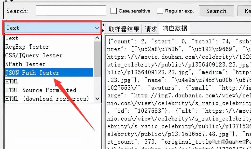 PS:响应数据默认显示格式为Text,可切换为JSON Path Tester格式