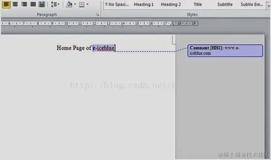 Comment comment1 = paragraph.AppendComment("www.e-iceblue.com");