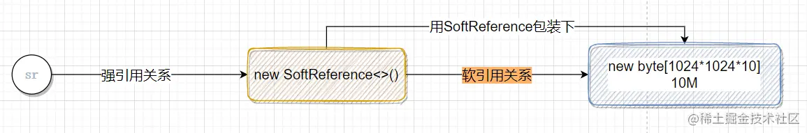 SoftReference<byte[]> softReference = new SoftReference<>(new byte[1024 * 1024 * 10]);// 10M