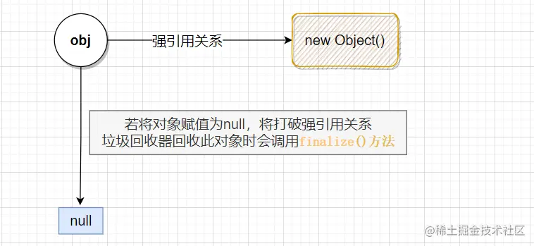 当对象的强引用关系被打破时,显式调用垃圾回收器