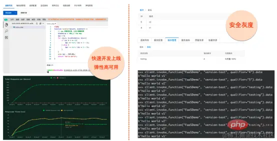 如上面陈述, 使用函数计算和传统的 PHP 开发相结合后, 您再也不用考虑负载均衡的事情, 不用考虑扩缩容的事情, 不用管理机器、担心宕机的事情等等, 只需要安安心心把业务代码开发好即可。
