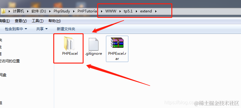 准备工作:下载PHPExcel文件存放在自己的文件下(我放在了extend目录下)