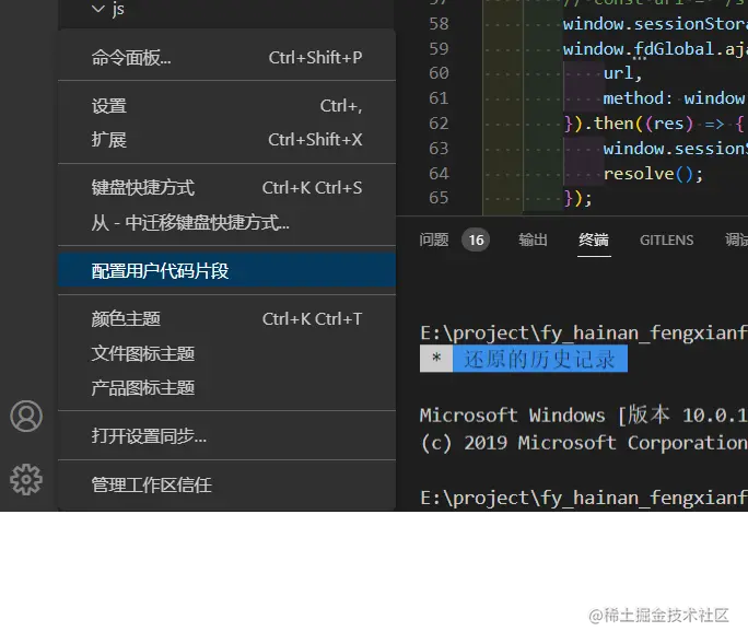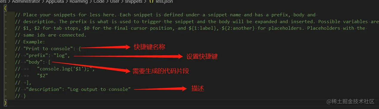 - vsCode左下方——>设置——>配置用户代码片段
