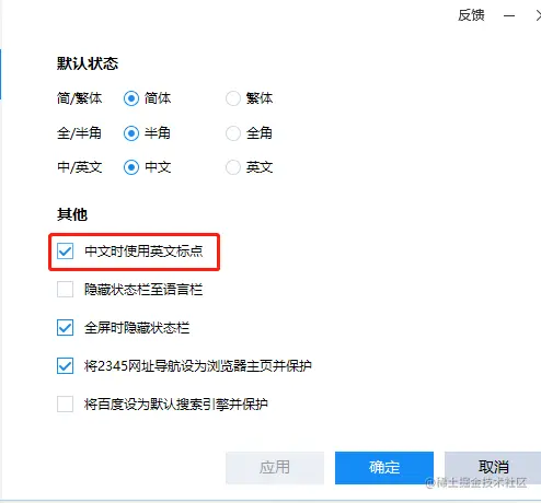 痛点:在写代码的时候,是不是经常敲中文(注释之类的),完了再敲小括号大括号都需要切换输入法;在输入法中勾选上“中文时使用英文标点”完美解决