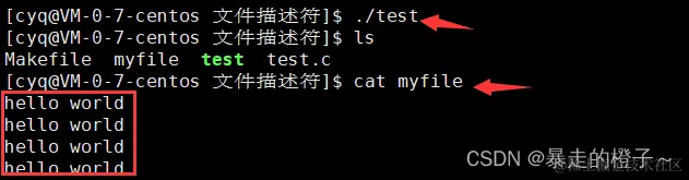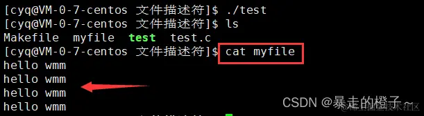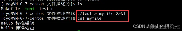 [cyq@VM-0-7-centos 文件描述符]$ ./test > myfile 2>&1