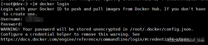 然后我们在自己的服务器上进行docker hub的登录,使用docker login命令进行登录操作。