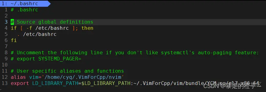 [cyq@VM-0-7-centos test]$ vim ~/.bashrc