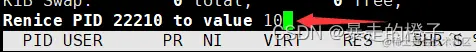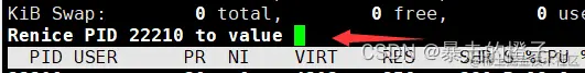 2、 进入top后按“r”–>输入进程PID–>输入nice值
