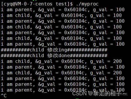 printf("i am parent, &g_val = %p, g_val = %d\n", &g_val, g_val);