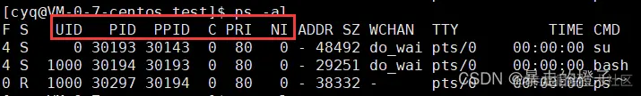 [cyq@VM-0-7-centos test]$ ps -al