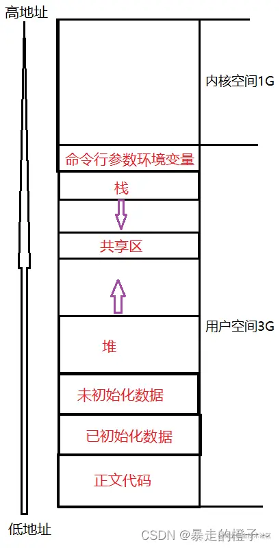 作用三: 站在CPU的和应用层的角度,进程统一可以看做统一使用4GB空间,而且每个空间区域的相对位置,是比较确定的。
