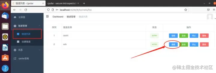 接着我们回到Ubuntu系统下的cpolar界面,打开“隧道列表”,找到之前创建的随机临时TCP隧道,进入“编辑”页面,将我们在cpolar官网获得的隧道端口粘贴进“预留的TCP地址”栏中(此栏目只有点选“固定TCP端口”后才会出现)。在这些信息更改完毕后,就可以点击下方的“更新”按钮,将这条固定TCP隧道更新到Ubuntu系统下的cpolar客户端中。