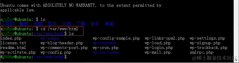 或输入命令“cd /var/www/html”,进入网页文件夹,再输入“ls”,查看网页文件情况。