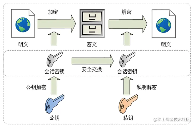 这样可以确保交换的密钥是安全的前提下,使用对称加密方式进行通信