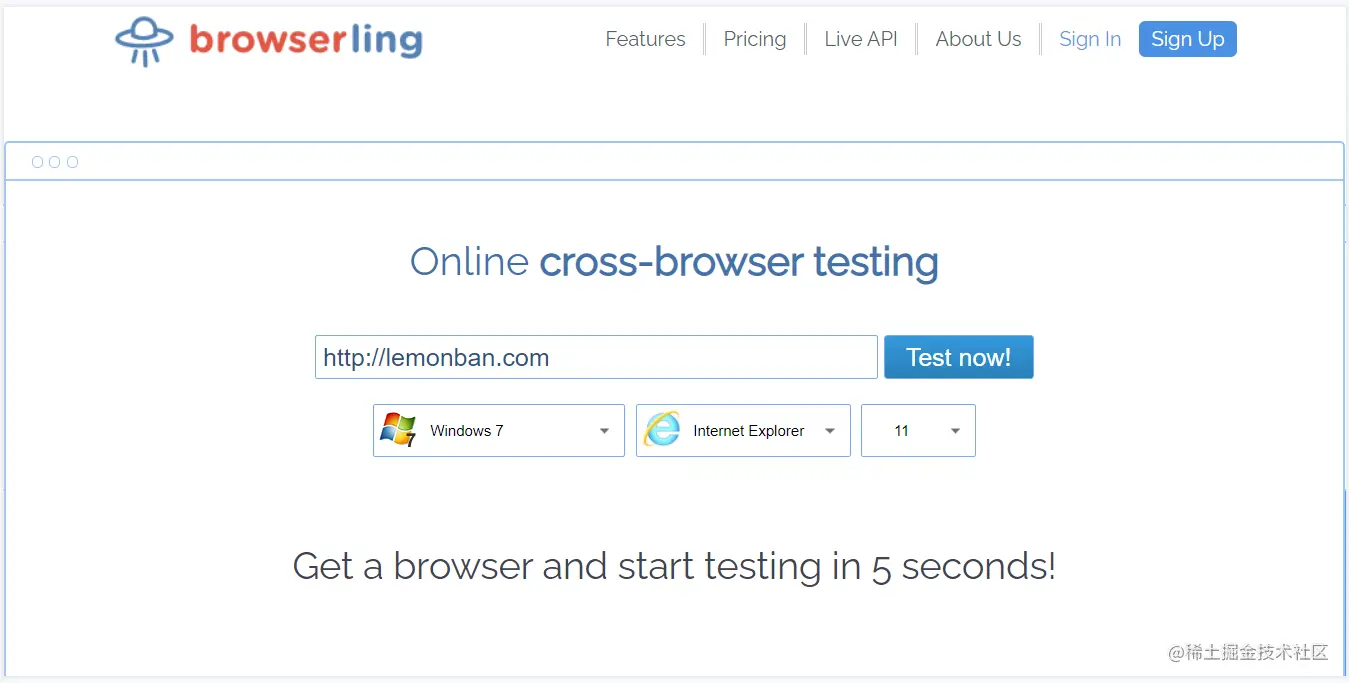 Browserling是一种实时的交互式跨浏览器测试平台,支持Windows、Android操作系统下不同浏览器如Internet Explorer, Chrome, Firefox, Safari和Opera。用户只需访问网站,选择操作系统下某一个浏览器就可开始测试其网站。部分操作系统下的浏览器测试免费,其他需付费。