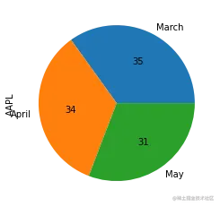如果我们对比率感兴趣,饼图是列中数值数据的一个很好的比例表示。以下示例显示了过去三个月的平均 Apple 股票价格分布: