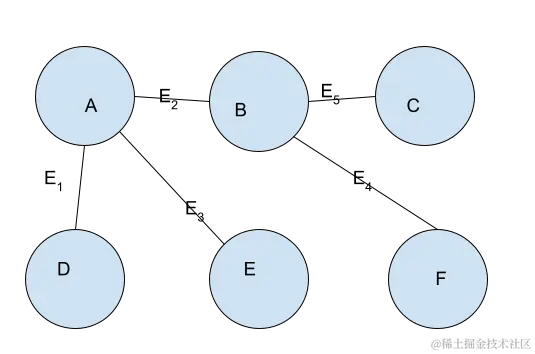 我们也可以从顶点B开始,沿着E2-E4-E5的路径到达顶点B,因此,我们将再次发现图形中存在一个循环。在这里,你可以看到,我们在遍历路径时只考虑了每条边一次。