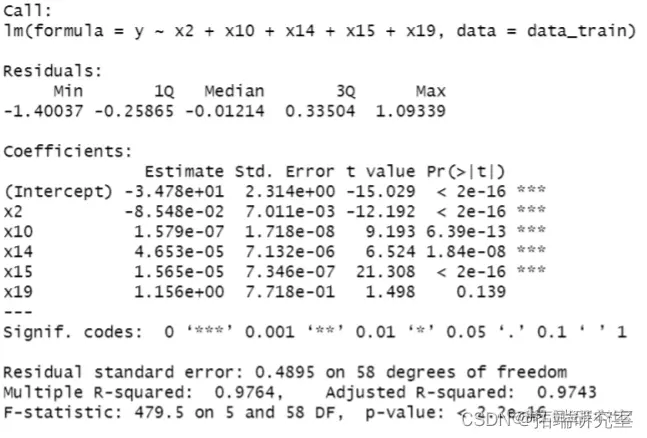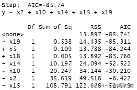 结合各因素的 t 检验以及模型的 AIC,通过向 前向后选择的方法,选择出最优的回归模型。
