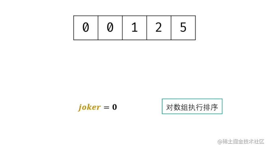 - 获取最大 / 最小的牌: 排序后,数组末位元素 nums[4] 为最大牌;元素 nums[joker]为最小牌,其中 joker 为大小王的数量。