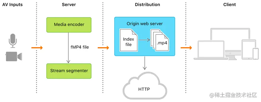 HLS 全称是 HTTP Live Streaming,是一个由 Apple 公司提出的基于 HTTP 的媒体流传输协议,用于实时音视频流的传输。目前HLS协议被广泛的应用于视频点播和直播领域。