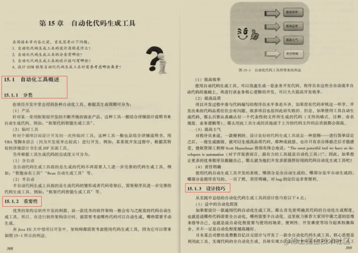 第四部分以开源框架以及自动化代码生成工具开发为中心,启发读者的创新思维,为软件架构的创新技能体系。
