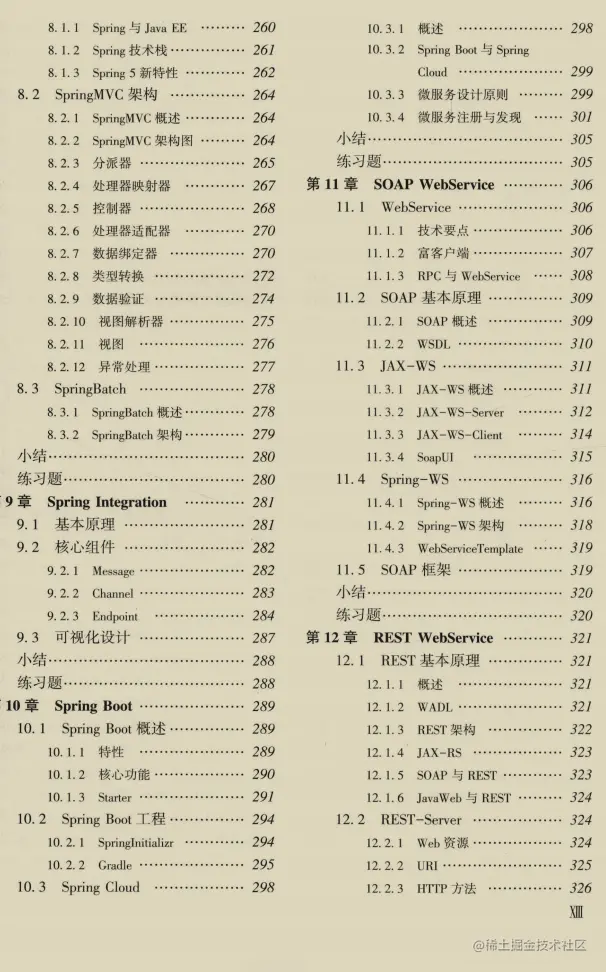 第三部分以Spring 技术为脉络,介绍了JavaWeb、SpringMVC、Spring Integration .Spring Boot、SOAP WebService、REST WebService以及框架测试等架构设计相关的核心技术,为软件架构设计与实现相关的综合技能体系;