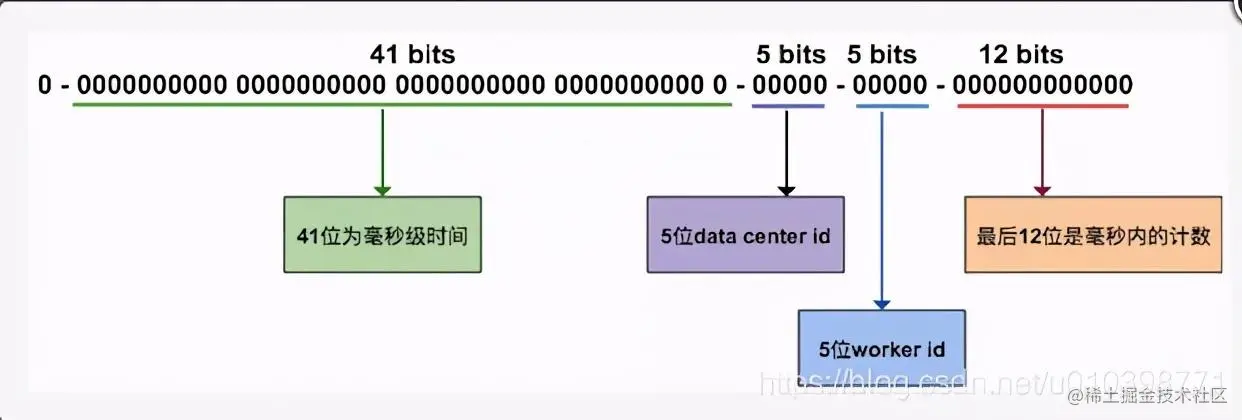 snowflake 是 twitter 开源的分布式ID生成算法,其核心思想为,一个long型的ID: