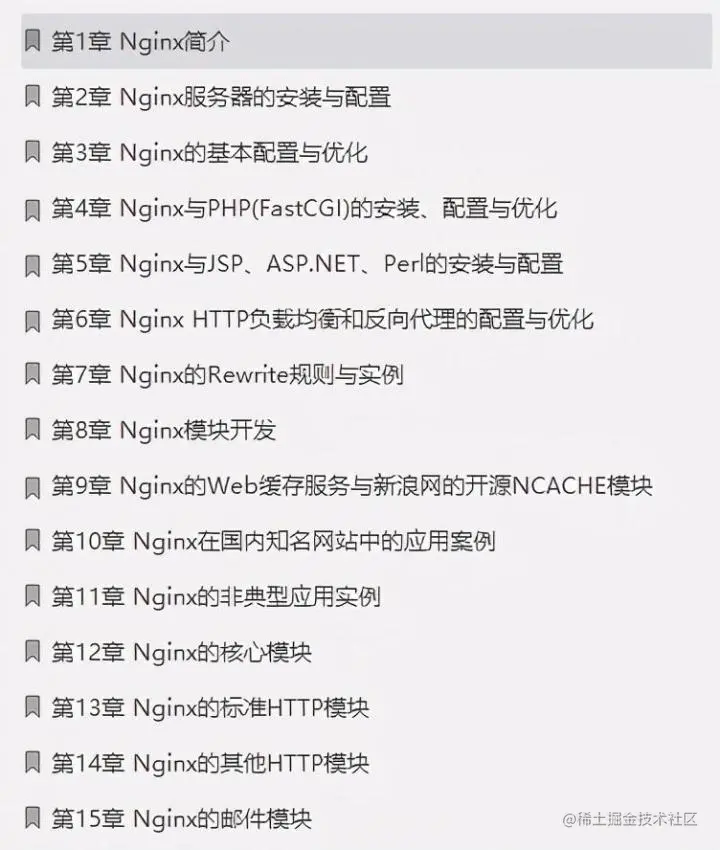这份文档分为基础进阶实战模块四部分,用全新的系统架构,充分展示了Nginx处理高并发和易维护等特性。