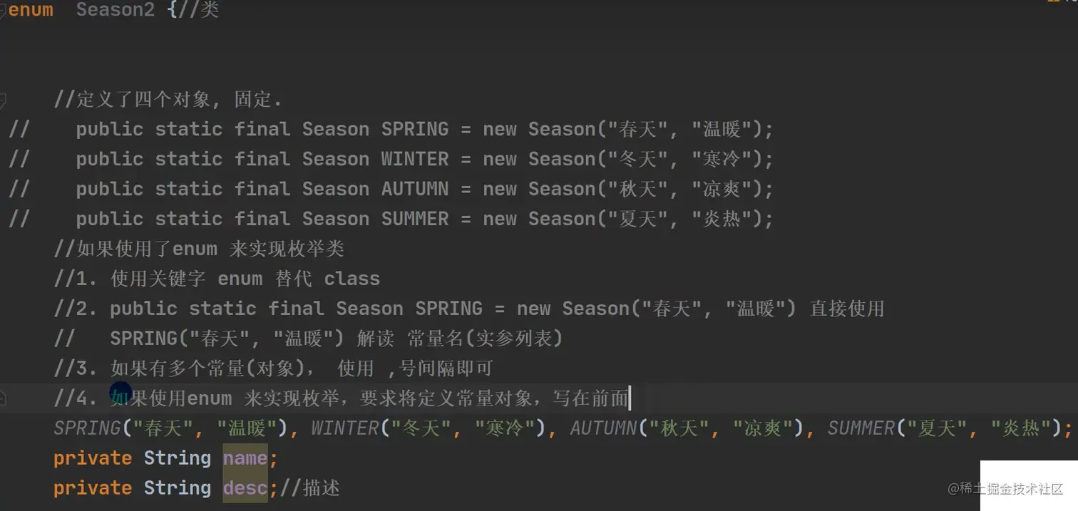 2)本类内部创建一组对象(例如春夏秋冬)